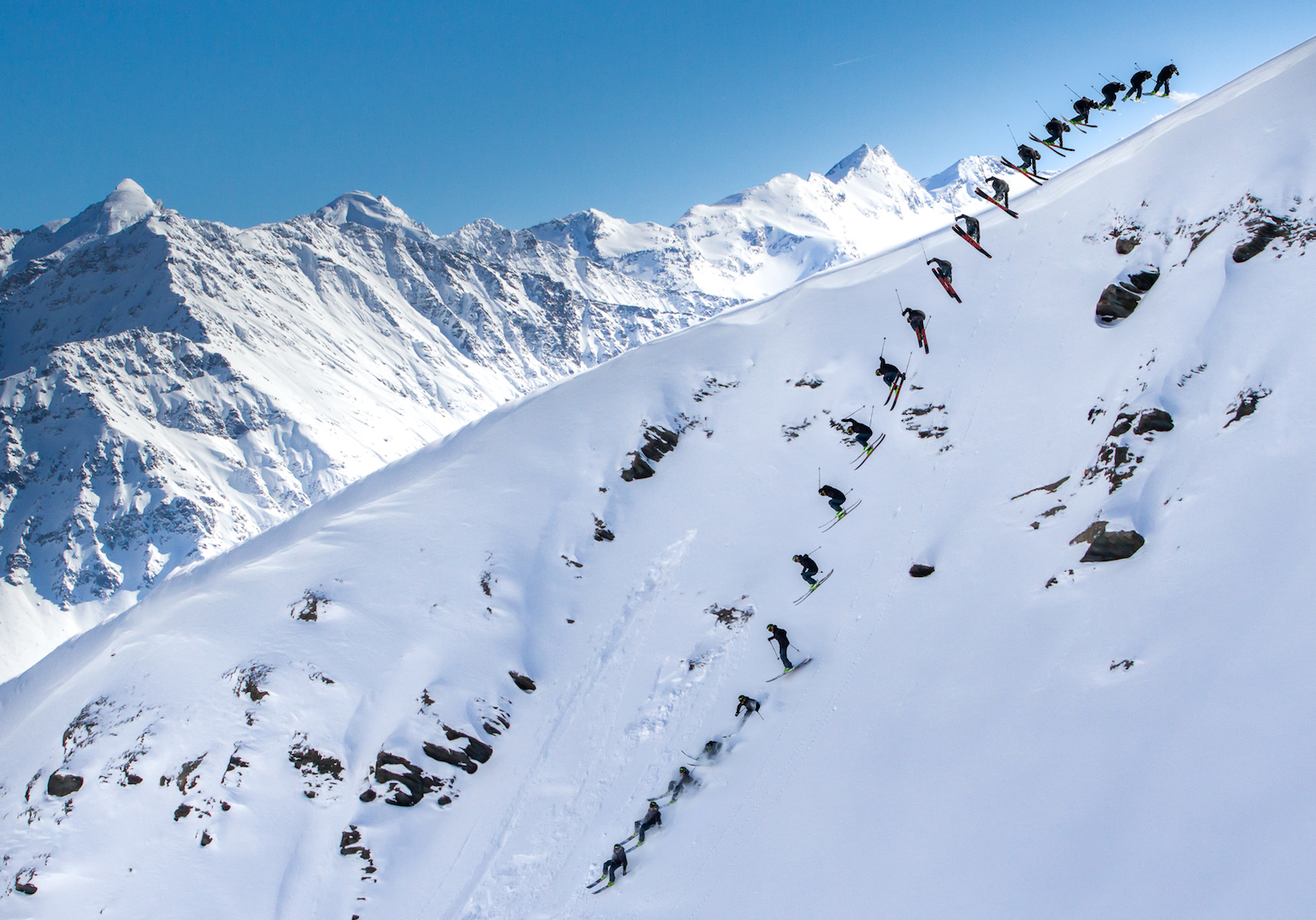 4 team in gara, e solo 72 ore per immortalare – con un portfolio di 10 immagini, un video edit di 2 minuti ed un Instagram video di 30 secondi massimi – discese sulla neve e boschi spettacolari, comprese discese da Punta Helbronner o in heliski.