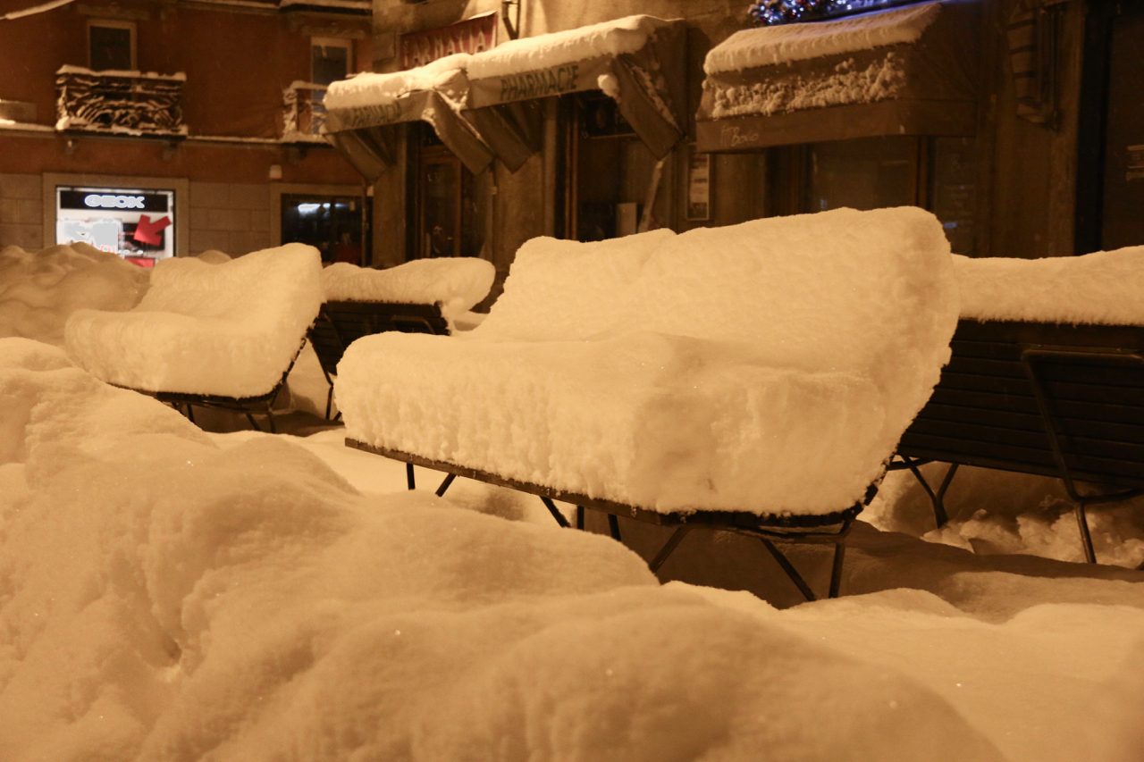 Breve videoracconto di una passeggiata notturna nel centro del capoluogo regionale, da Piazza della Repubblica all'Arco di Augusto, durante la nevicata del 13 gennaio 2017.