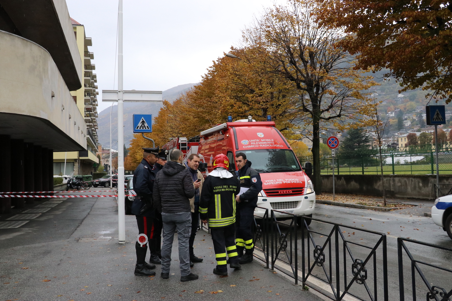 Il nucleo Nucleare Batteriologico Chimico e Radiologico dei Vigili del fuoco, assieme ai Carabinieri e alla Polizia Locale, è intervenuto nella sede di viale Federico Chabod.