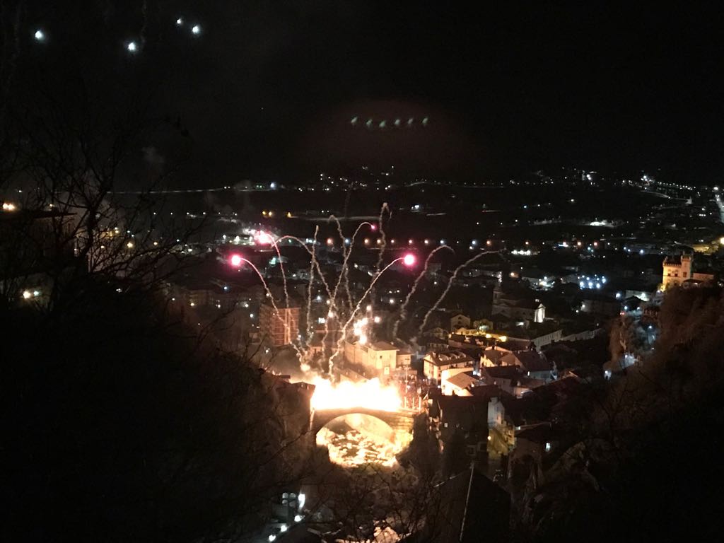 Dopo la sfilata dei carri allegorici nel pomeriggio di ieri, martedì 13 febbraio, con la partecipazione dei Personaggi dello Storico Carnevale e del loro Seguito, della Banda Musicale di Pont-Saint-Martin e dei Pifferi e Tamburi di Andrate, e il rogo del diavolo, il Carnevale si è chiuso con un grande spettacolo piromusicale nella scenografia del maestoso Ponte romano a cura della Pyroitaly. Le foto della galleria sono scattate da Raffaella Longis.