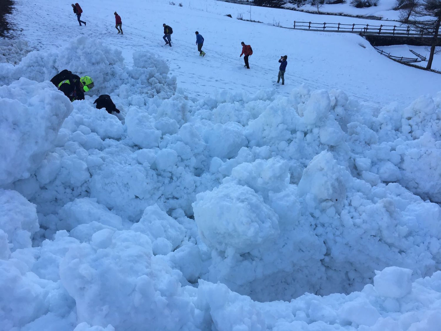 Su richiesta dell’Amministrazione comunale è quindi scattato l’intervento di Soccorso Alpino Valdostano (anche con l’elicottero), Vigili del fuoco e Corpo Forestale Valdostano. Guide e tecnici hanno cercato eventuali persone e mezzi coinvolti, sia con un'unità cinofila, sia con Artva e “metal detector” (questi ultimi, per una maggiore sensibilità rispetto alla presenza di metalli nella neve). Il sopralluogo, conclusosi verso le 17.30, ha dato esito negativo: fortunatamente nessuno passava quando la slavina si è abbattuta sull’asfalto.