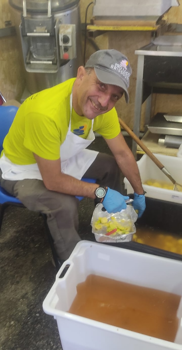 Per quanto riguarda le specialità enogastronomiche la pro loco propone, oltre al fritto misto di pesce per cui è conosciuta, soprattutto i grandi classici della tradizione valdostana a partire dalla polenta (concia e sempla) con carbonada, la carne gligliata, la valpelinenze e molto altro. Quest’anno l’organizzazione ha deciso di prestare particolare attenzione alla provenienza dei prodotti locali serviti: le verdure, i formaggi e gli ingredienti tipici sono a kilometro zero, in particolare le patate, fornite da un agricoltore locale, che provengono addirittura dal campo adiacente i padiglioni.