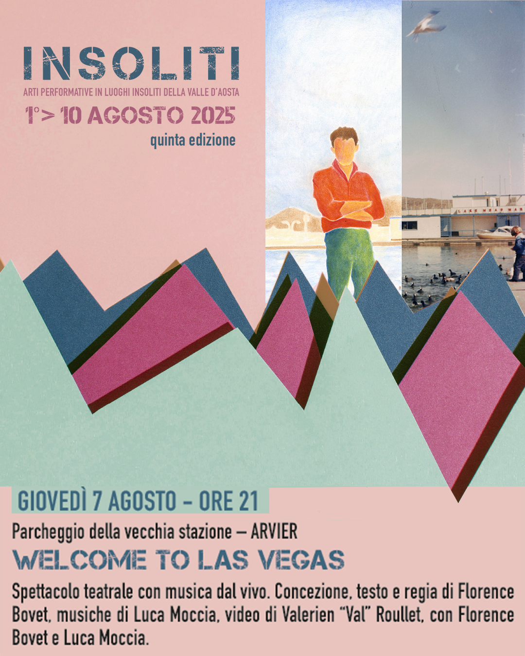 Giovedì 7 agosto alle ore 21 davanti la vecchia stazione di Arvier, la giovane artista valdostana Florence Bovet accompagnata dalle musiche di Luca Moccia, presenta lo spettacolo Welcome to Las Vegas prodotto in esclusiva e in prima presentazione per il Festival. Ispirato alla vera storia di Valerien “Val” Roullet, lo spettacolo si basa su accurate ricerche e ripercorre la vita di un emigrato valdostano che negli anni ’30 si imbarca verso l’America. La vita di un uomo comune diventa così il pretesto e l’occasione per riflettere in modo più ampio sui fenomeni migratori.