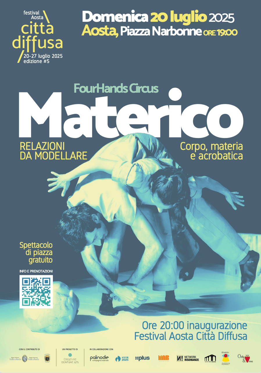 Il festival è un progetto di Creature Montane APS in collaborazione con Palinodie compagnia teatrale. Con il sostegno di Fondazione compagnia di San Paolo e il contributo della Regione Vlle d’Aosta, il Comune di Aosta e Aostæ 2025.