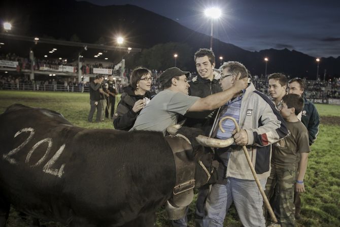 La bovina dei Frères Cuneaz conquistara l’ambitissimo bosquet di prima categoria battendo Villa di Livio Pervier. In seconda categoria vittoria per Jardin di Jean-Antoine Maquignaz e in terza per Baronne di Michele Bionaz. Ph. Moreno Vignolini
