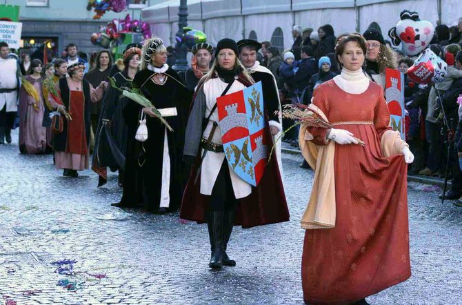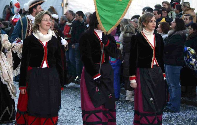 Alcuni momenti della sfilata dei gruppi carnevaleschi di domenica 13 gennaio 2008 per le vie del centro, di fronte alle centinaia di persone giunte nel capoluogo dalle vallate laterali.