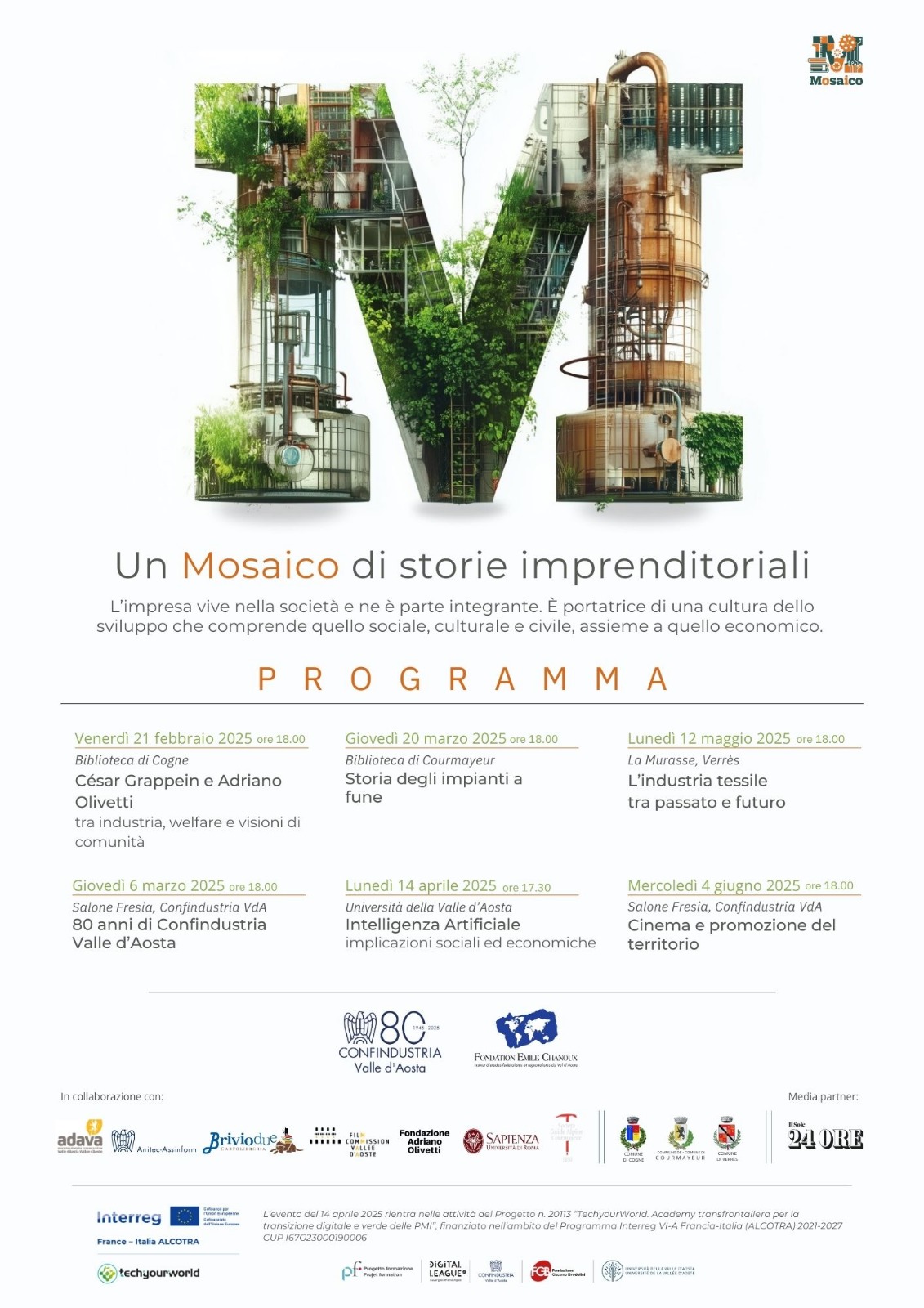 Per l’occasione un evento della rassegna Mosaico, nata dalla sinergia tra Fondation Émile Chanoux e Confindustria Valle d’Aosta, sarà dedicato alla storia dell’industria valdostana.