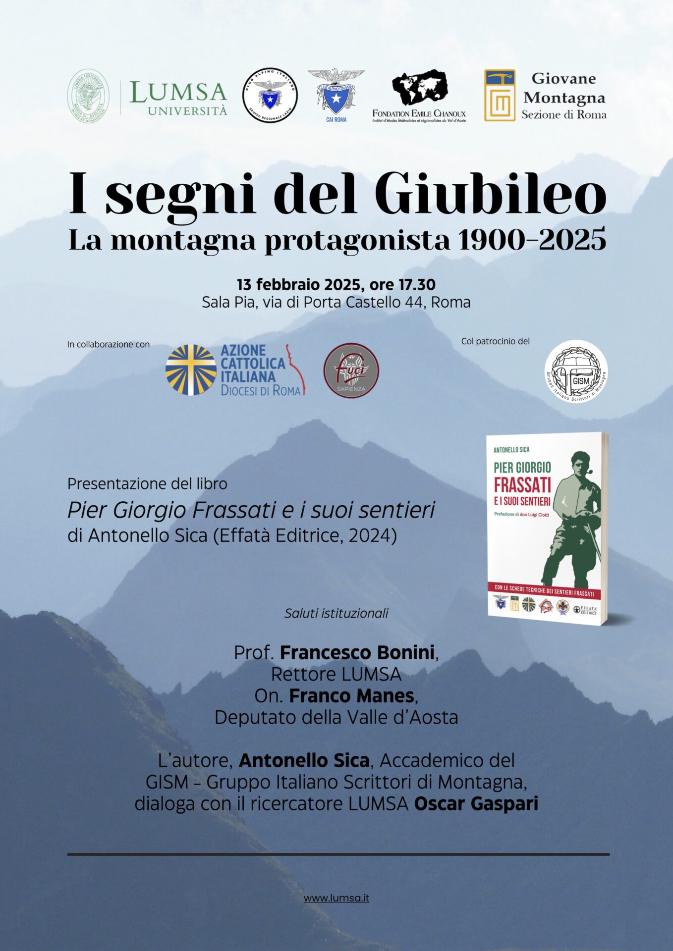 Il primo è il 13 febbraio alle 17:30 presso presso la Sala Pia, via di Porta Castello 44, Roma, con la presentazione del volume di Antonello Sica, Pier Giorgio Frassati e i suoi sentieri, Torino, Effatà Editrice, 2024, mentre giovedì 27 febbraio alle 17:00 presso la Sala Giubileo, via di Porta Castello 44, Roma, sarà dedicato un evento speciale a Erri De Luca: Ines Millesimi presenterà i suoi libri Discorso per un amico e L’età sperimentale alla presenza dell’autore e verrà proiettato il film L’età sperimentale.