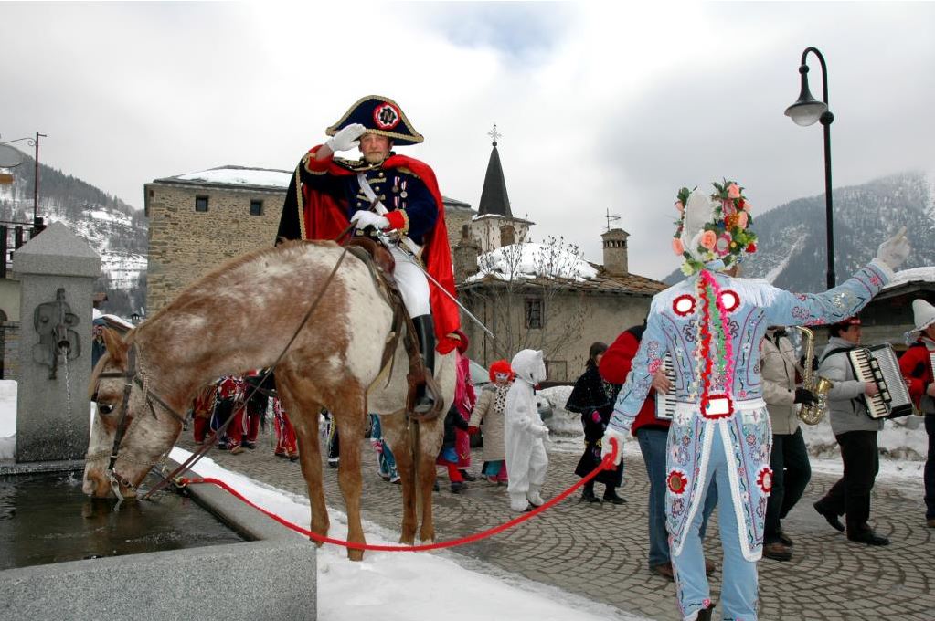 La tradizione lega la nascita del carnevale al passaggio di Napoleone attraverso il Colle del Gran San Bernardo, nel maggio del 1800, durante la campagna d’Italia. I costumi sarebbero dunque la trasposizione allegorica delle uniformi dei soldati francesi. Ritroviamo inoltre l’orso che rappresenta l’avvicendarsi della primavera; le code dei muli, che rappresentano i venti e servono per allontanare le correnti d’aria nefaste; gli specchi sui costumi, che devono scacciare gli spiriti maligni; il colore rosso, che simboleggia la forza e il vigore e che, anch’esso, ha il potere di esorcizzare i malefici e le disgrazie. Durante il corteo, le maschere visitano le famiglie; entrano nelle case, ballano nelle strade e nelle piazze, mangiano e bevono ciò che viene loro offerto..
