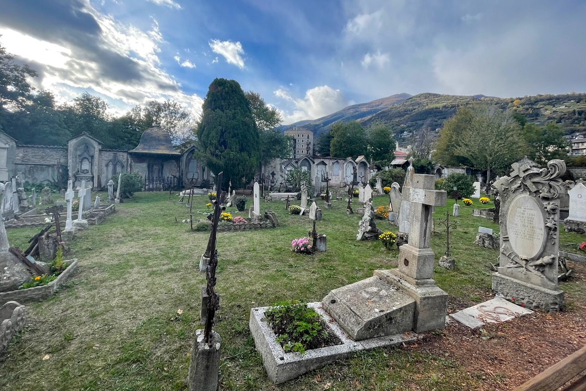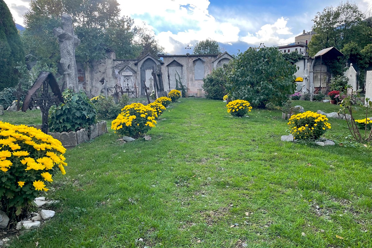 In occasione della festività di Ognissanti e della Commemorazione dei defunti – del 1° e 2 novembre – il Cimetière de Saint-Ours di Aosta ha aperto straordinariamente le sue porte, tutti i giorni. A comunicarlo è l’Associazione Amis du Cimetière de Saint-Ours. Il sito rimarrà aperto fino a domenica 5 novembre, dalle 9.30 alle 17.30. Domani, 3 novembre alle 15 verrà invece celebrata la Santa Messa nella cappella all’interno.