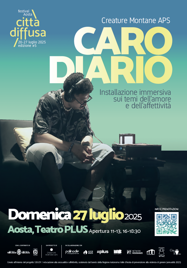 Dalle 11 alle 13 e dalle 16 alle 18:30, al Teatro di Plus è visitabile Caro Diario, un’installazione immersiva nata dal progetto S3XJOY. Composta da 11 postazioni audio, raccoglie le voci di giovani partecipanti che riflettono su intimità, corpi e relazioni.