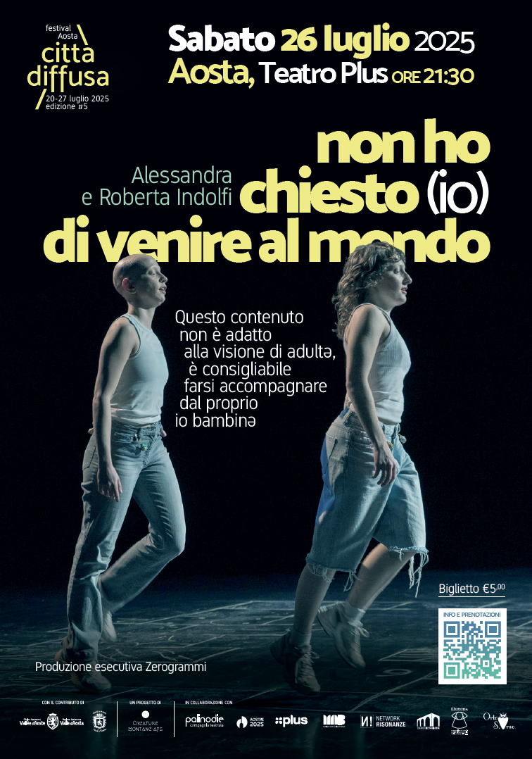 Dopo l’anteprima di domenica 20 luglio, il festival Aosta Città Diffusa entra nel vivo con quattro giornate dense di appuntamenti, da giovedì 24 a domenica 27 luglio. Il tema scelto per la quinta edizione è “Venire al mondo”, una riflessione artistica che attraversa linguaggi e generazioni, invitando a interrogarsi sul nostro rapporto con il tempo, le origini e la trasformazione. Gli spettacoli e i laboratori in programma coinvolgono spazi diversi della città – da Plus alla Pépinière, dal teatro Giacosa al chiostro di Sant’Orso – e propongono un’immersione collettiva tra teatro, danza, performance, installazioni e musica. Di seguito il programma, per prenotazioni
