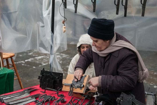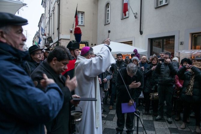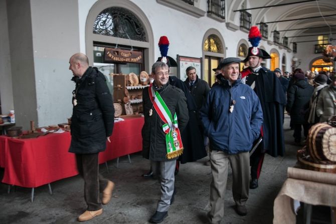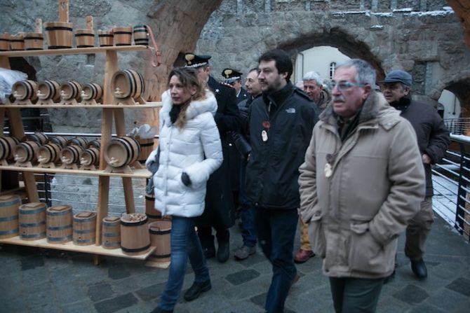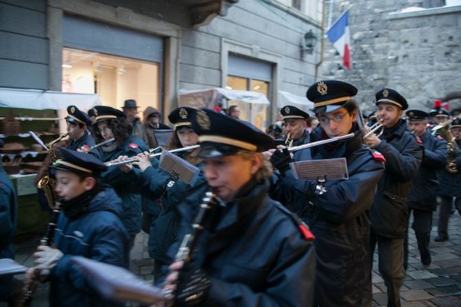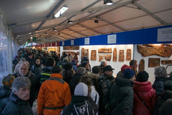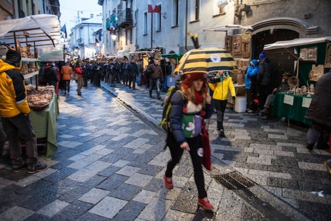 Con la benedizione del Vescovo alle Porte Pretoriane di Aosta e con il corteo di autorità tra i banchi degli espositori prende il via la Millenaria, imbiancata dalla neve. Ph. Moreno Vignolini