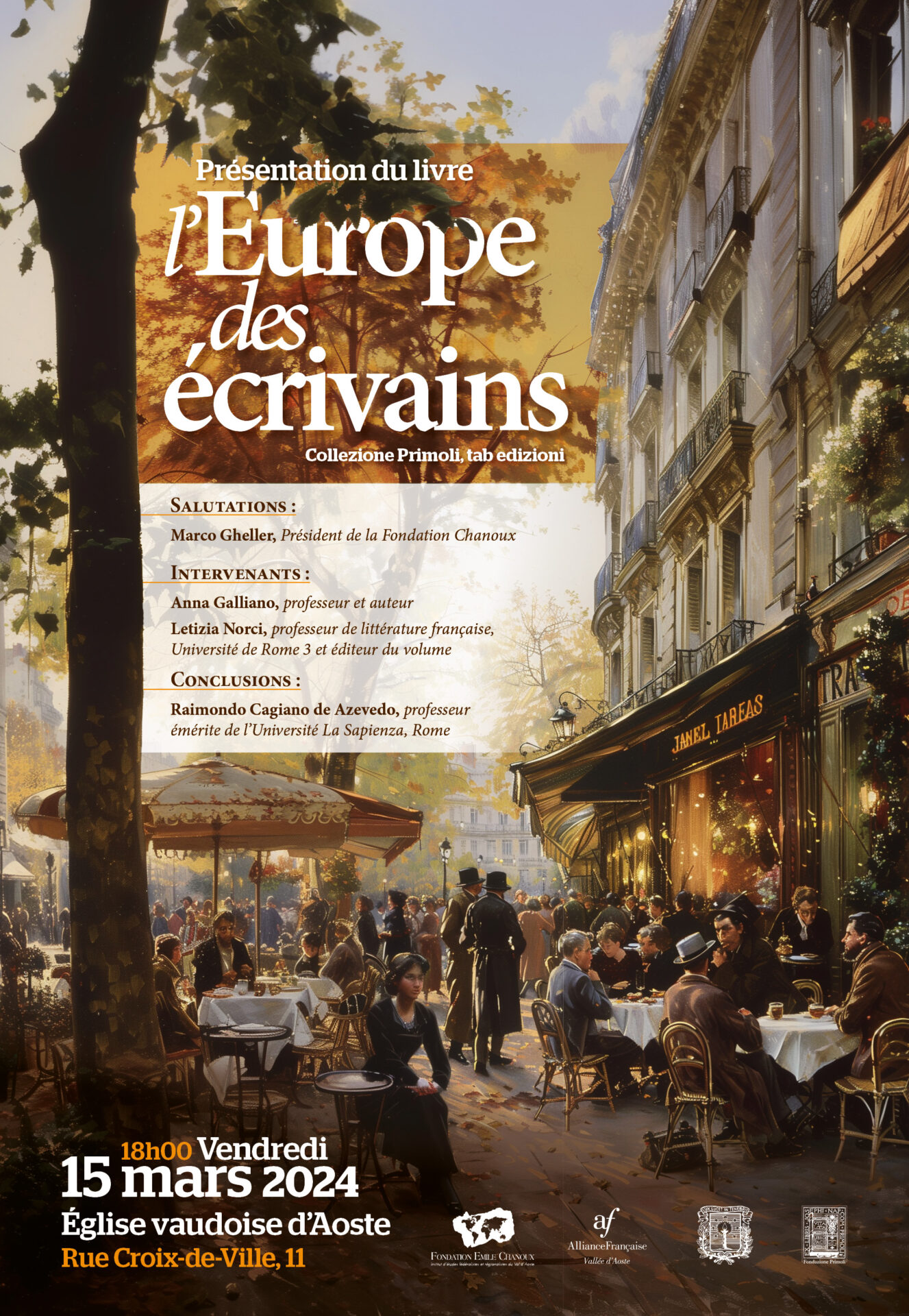 In occasione del mese della francofonia la Fondation Émile Chanoux, in collaborazione con l’Alliance française e la Fondazione Primoli, presenta, venerdì 15 marzo alle 18 alla chiesa valdese di Aosta il volume L’Europe des écrivains.