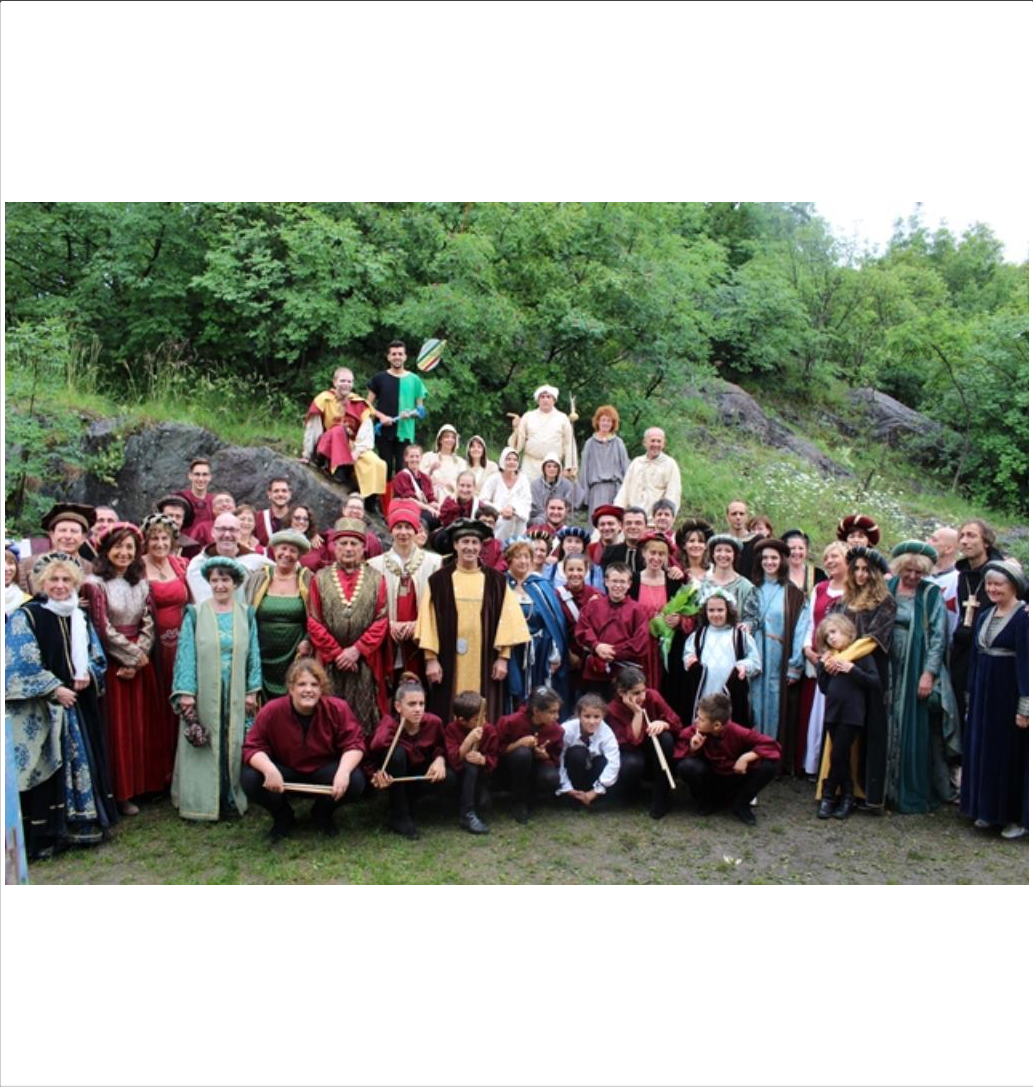 …Nella notte stellata, nel tepore di una sera d’estate nella piazza di fronte all’antico Ponte Romano illuminata con fiaccole giungono i Nobili, le Dame, i Cavalieri e i Pellegrini vi proponiamo una grande festa allietata da spettacoli di teatro, da uomini d’arme, sbandieratori, musici e magie di fuoco…