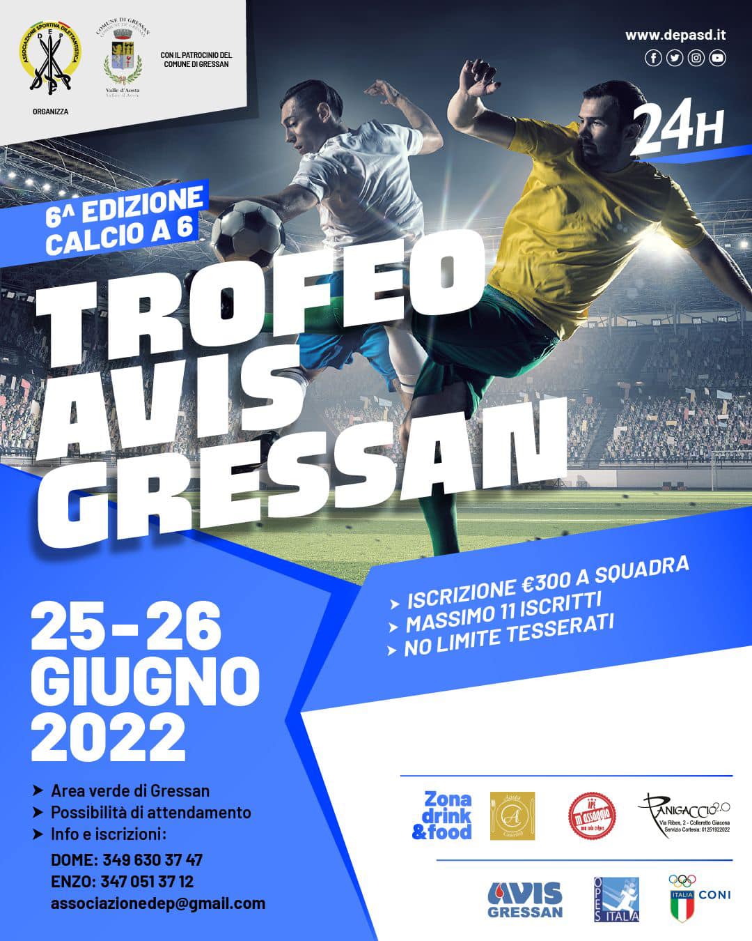 Con la fine dell’emergenza sanitaria l’estate vede il ritorno di molte manifestazioni sportive. Dopo due anni di stop, il 25 e il 26 giugno all’area verde di Gressan si gioca a calcio, e non solo. Torna il Trofeo Avis, il torneo di calcio a 6 organizzato da DEP ASD con la sua sesta edizione e due grandi novità: un torneo di calcio a 5 interamente dedicato agli over 40 e il Trofeo Baldelli di Green Volley misto