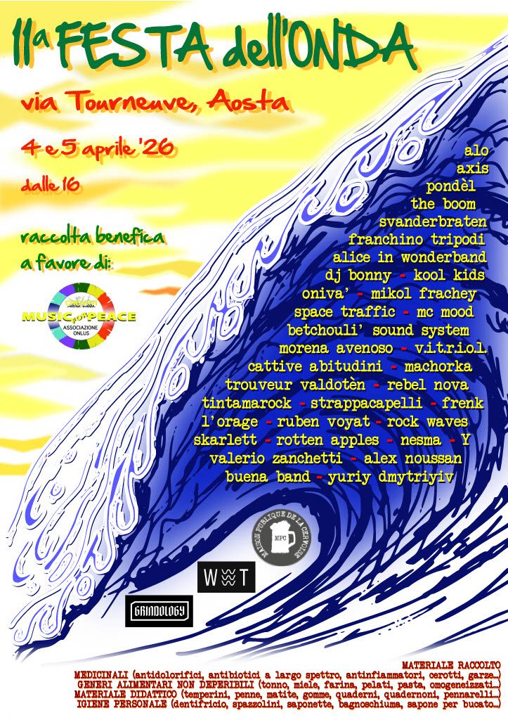 A Pasqua via Tourneuve ad Aosta si trasforma in una strada di una grande capitale mondiale. Fiumi di persone si ritrovano per due giorni per ascoltare musica dal vivo, ritrovarsi, fare festa ma anche per una buona causa. È la Festa dell’Onda, arrivata alla sua 11ª edizione in programma sabato 4 aprile a partire dalle 16 per chiudersi domenica 5 in serata.