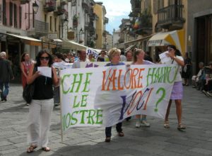 Circa 400 lavoratori delle coop valdostane aderenti al Consorzio Trait d’Union hanno preso parte alla manifestazione per esprimere le loro preoccupazione sul cambio di gestione dei servizi sociali rivolti agli anziani della città di Aosta.
