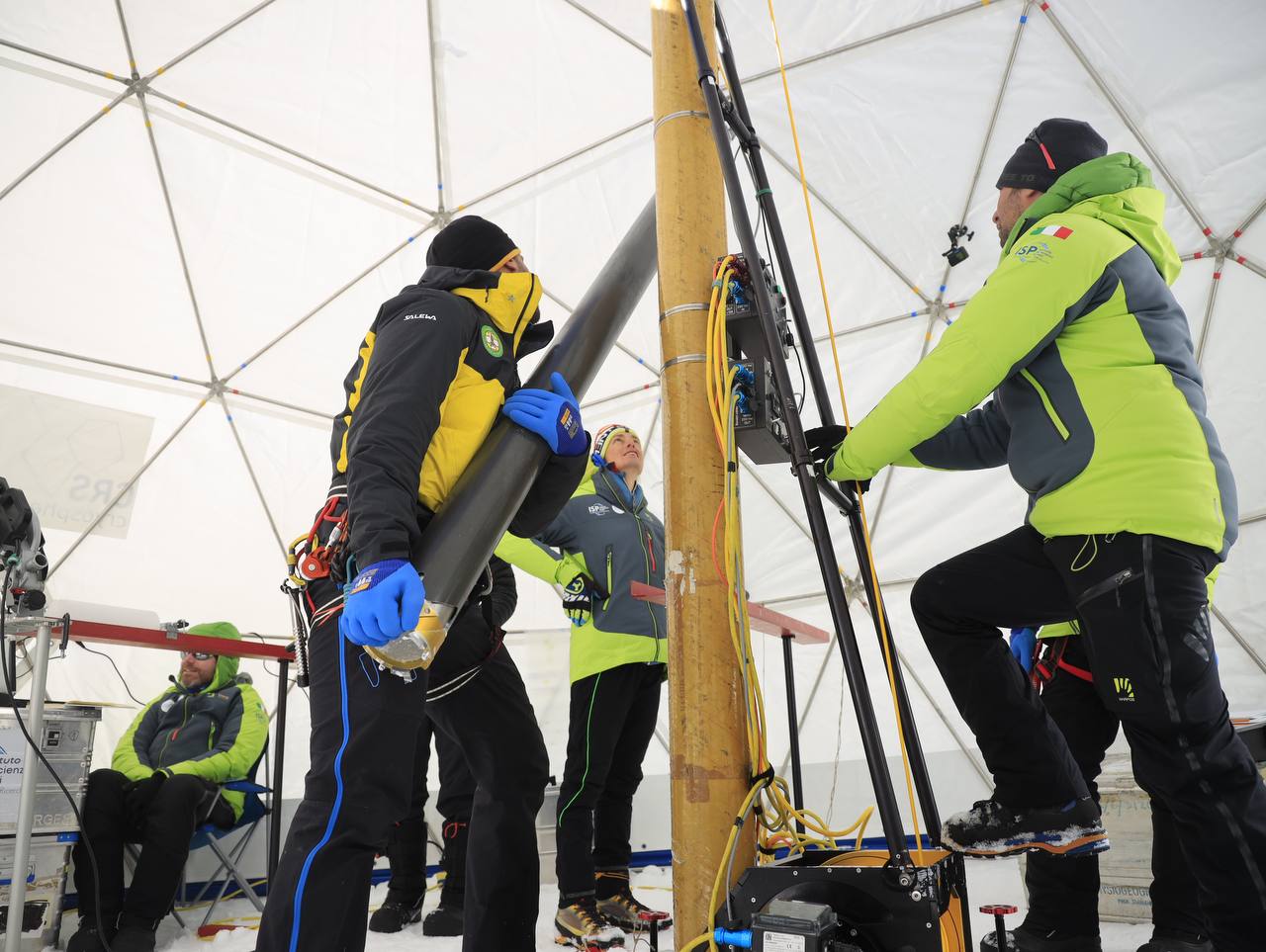 Con una macchina carotatrice, sono state prelevate due carote di ghiacciaio della profondità di 106 metri che permetteranno di ricostruire l’evoluzione del clima e dell’ambiente negli ultimi 200 anni, “con una grandissima definizione temporale – spiega Fabrizio De Blasi dell’Istituto di Scienze Polari del Consiglio nazionale delle ricerche -. Possiamo, ad esempio, ricostruire la temperatura estiva e quella invernale”. Le due carote sono state estratte tra l’11 e il 14 ottobre 2023, stoccate in un container e portate a Venezia per essere analizzate. Una sarà conservata in Antartide.