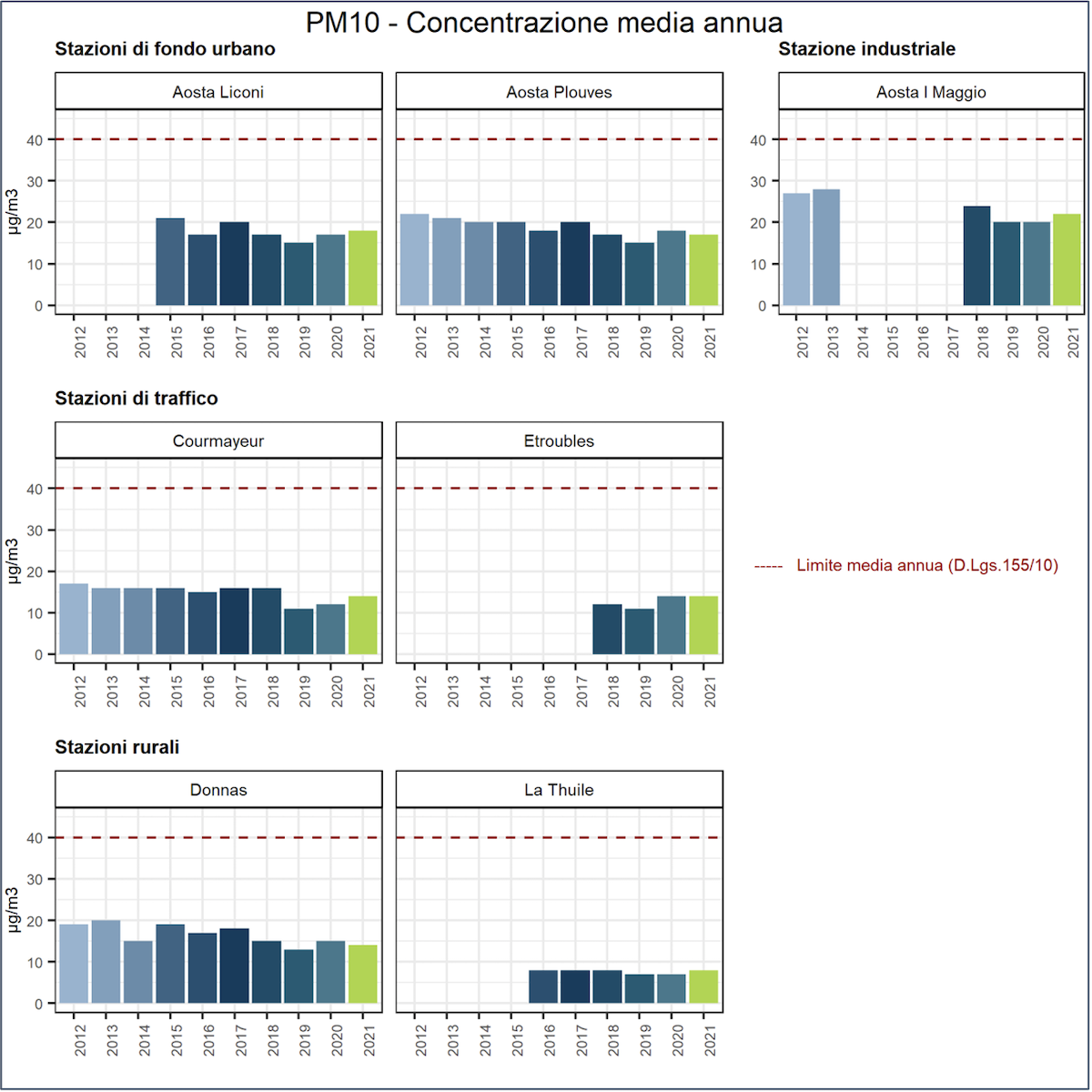 Si tratta di valori ampiamente inferiori al limite sulla media annua di 40 µg/m³.