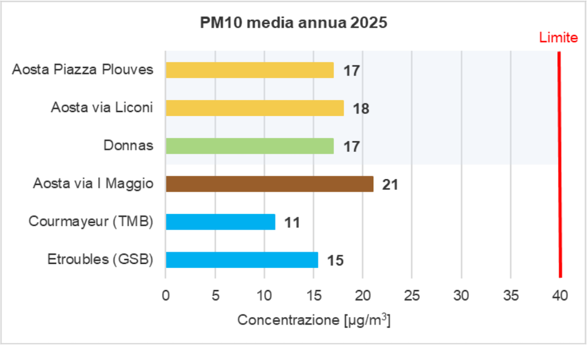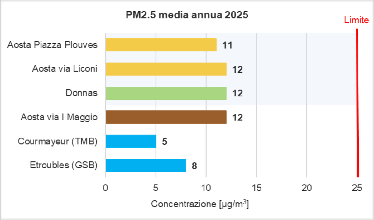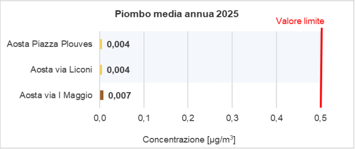 Sono invece inferiori ai valori limite/obiettivo i valori che riguardano i metalli. Anzi, dal report Arpa emerge che “rispetto al 2024 si osserva una sensibile diminuzione dei valori di nichel in tutte le stazioni di Aosta”.