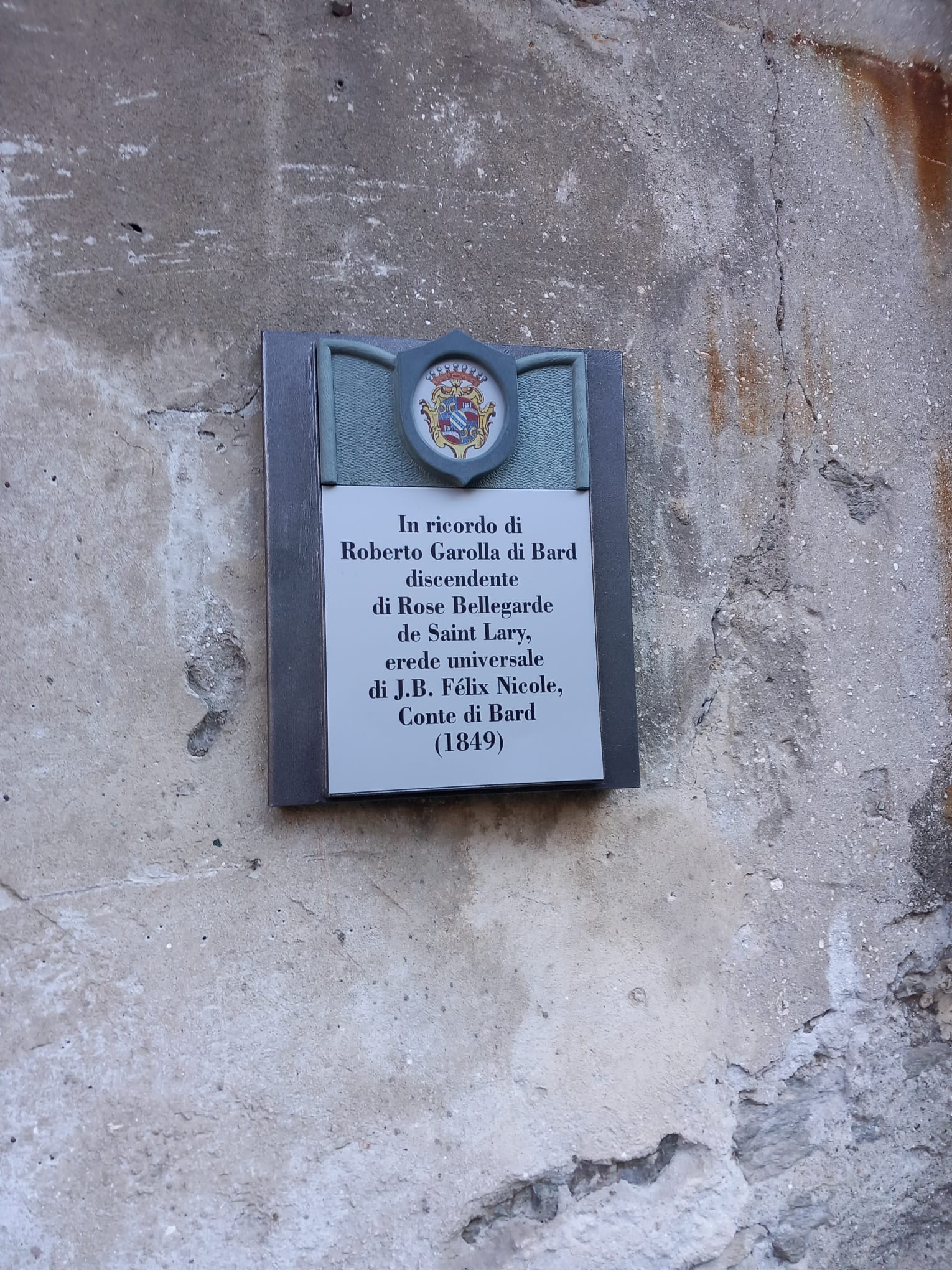 Si chiama Casa Nicole, ma i Nicole non esistono più. Però, una professoressa in pensione di Pont-Saint-Martin è entrata in contatto con un discendente (in un certo senso) della famiglia Nicole, un importante armatore di Napoli. Per commemorare quello che sarebbe stato il suo 101esimo compleanno, domenica 20 novembre 2022 a Bard è stata posizionata una targa in sua memoria.