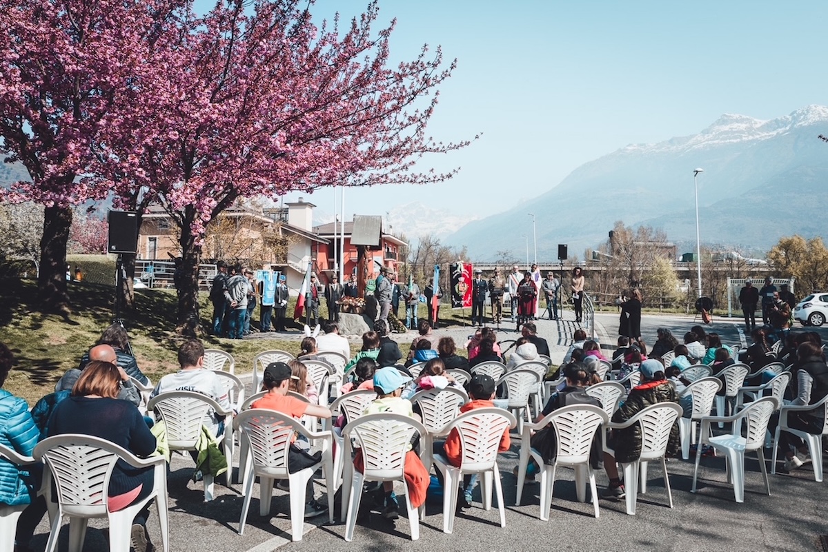 Dopo la deposizione di una corona e la benedizione da parte del parroco di Charvensod e Pollein, don Jean Claude Bizindavyi, l’attrice Silvia Pietta della compagnia teatrale Palinodie ha letto due brani scritti da Verdiana Vono e ispirati dai documenti dell’archivio storico dell’Anpi e dal fumetto “Il coraggio di vivere” di Alessio Fermanelli dedicato alla vita e alla morte di Saba e di Yves Pellissier, Louis Vazier e Joseph Donzel, Caduti di Charvensod uccisi dai fascisti.