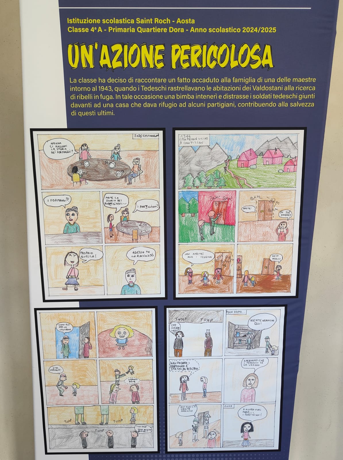 Raccontare le storie della Resistenza che risalgono alla Seconda guerra mondiale e che non si trovano nei libri. Farlo attraverso il fumetto, un linguaggio semplice e diretto che abbraccia tutte le generazioni. È il progetto “Resistenza, Liberazione, Autonomia. I ragazzi raccontano la Valle d’Aosta a fumetti”, promosso dal Celva con il sostegno del Comitato dell’80° anniversario della Resistenza, Liberazione e Autonomia della Valle d’Aosta. L’iniziativa ha coinvolto sei classi delle scuole primarie San Francesco, Quartiere Dora e Ponte di Pietra, ad Aosta.