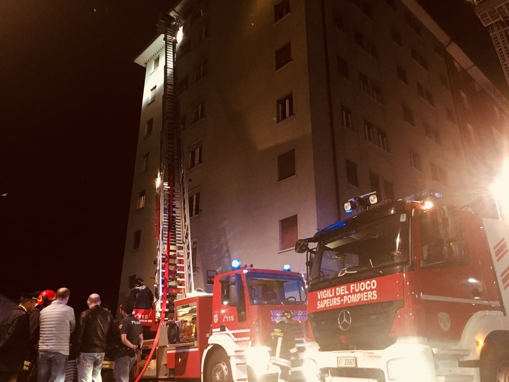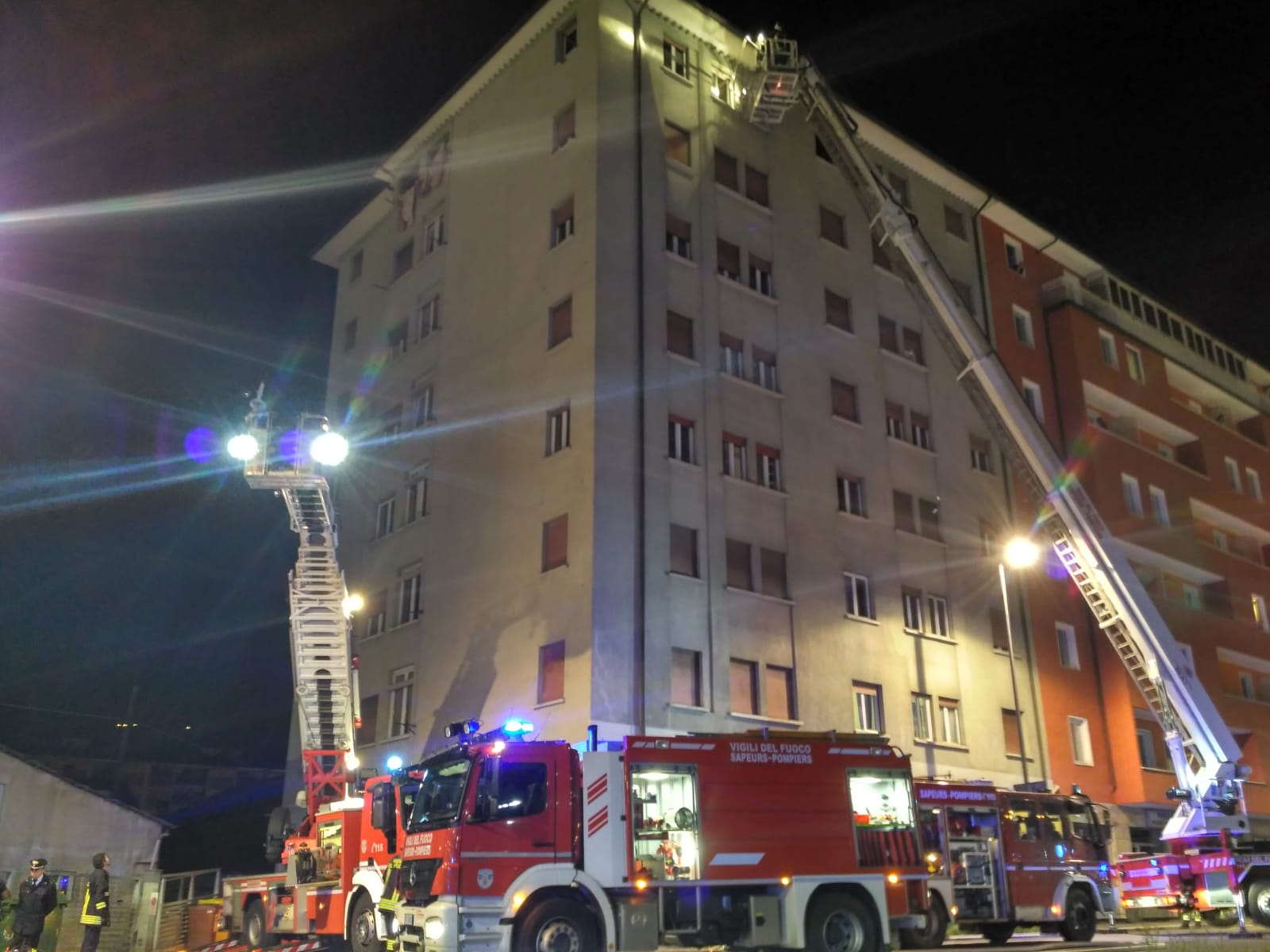 Un forte dispiegamento di mezzi dei Vigili del fuoco è intervenuto in Viale dei Partigiani ad Aosta per un incendio scoppiato in un appartamento al settimo piano di un condominio. Dalle prime indiscrezioni sembrerebbe che a scatenare le fiamme sia stata un'esplosione.