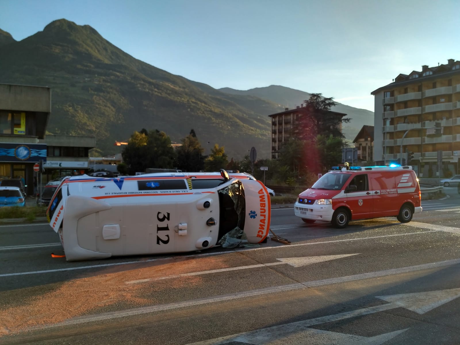A bordo c'erano due autisti soccorritori, un paziente, un'infermiera e un medico. Sul posto sono intervenuti, oltre al 118, anche la Polizia stradale, i Vigili del fuoco e gli agenti di Polizia della Questura di Aosta.