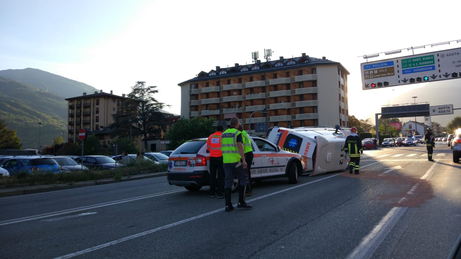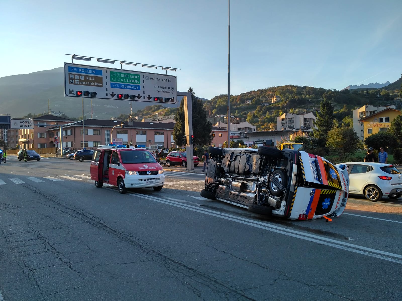 Un’ambulanza del 118 è stata coinvolta in un incidente stradale, questo pomeriggio intorno alle ore 17.45 circa, mentre si dirigeva in emergenza lungo la statale 26 in direzione Torino, nel tratto di strada di Saint-Christophe, in prossimità del semaforo.