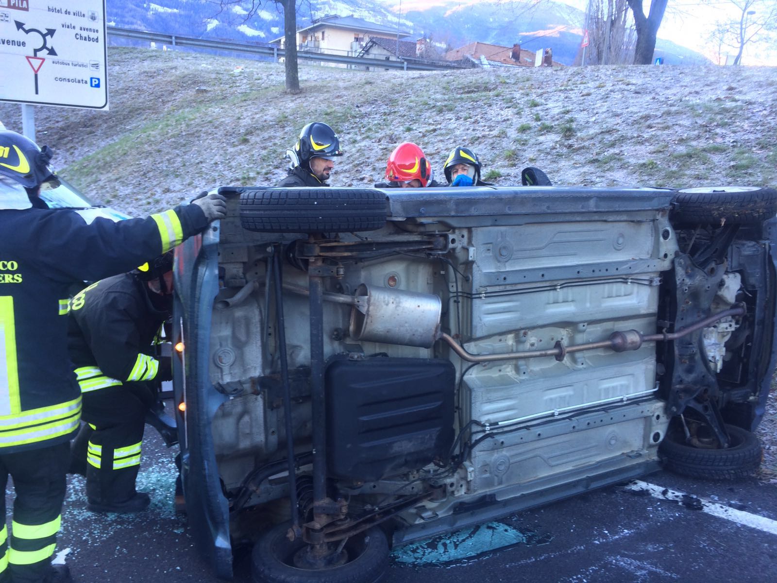 Aosta, auto si ribalta in regione Consolata. Illesa la conducente