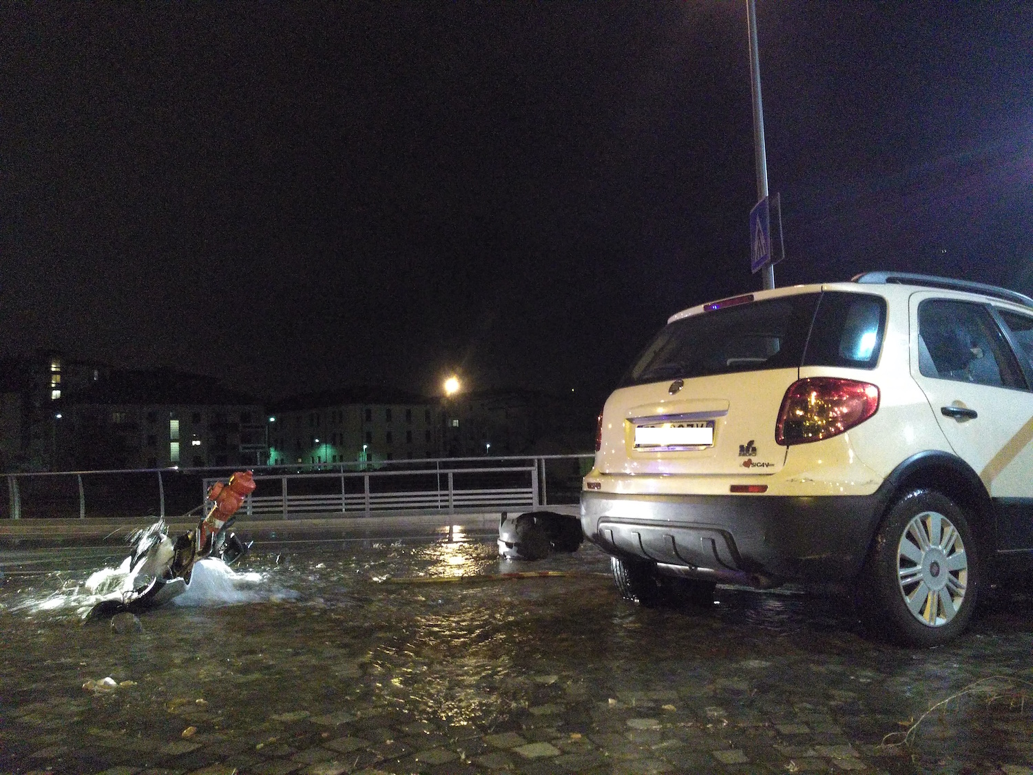 Aosta, esce di strada ed abbatte colonnina antincendio: auto distrutta e strada allagata