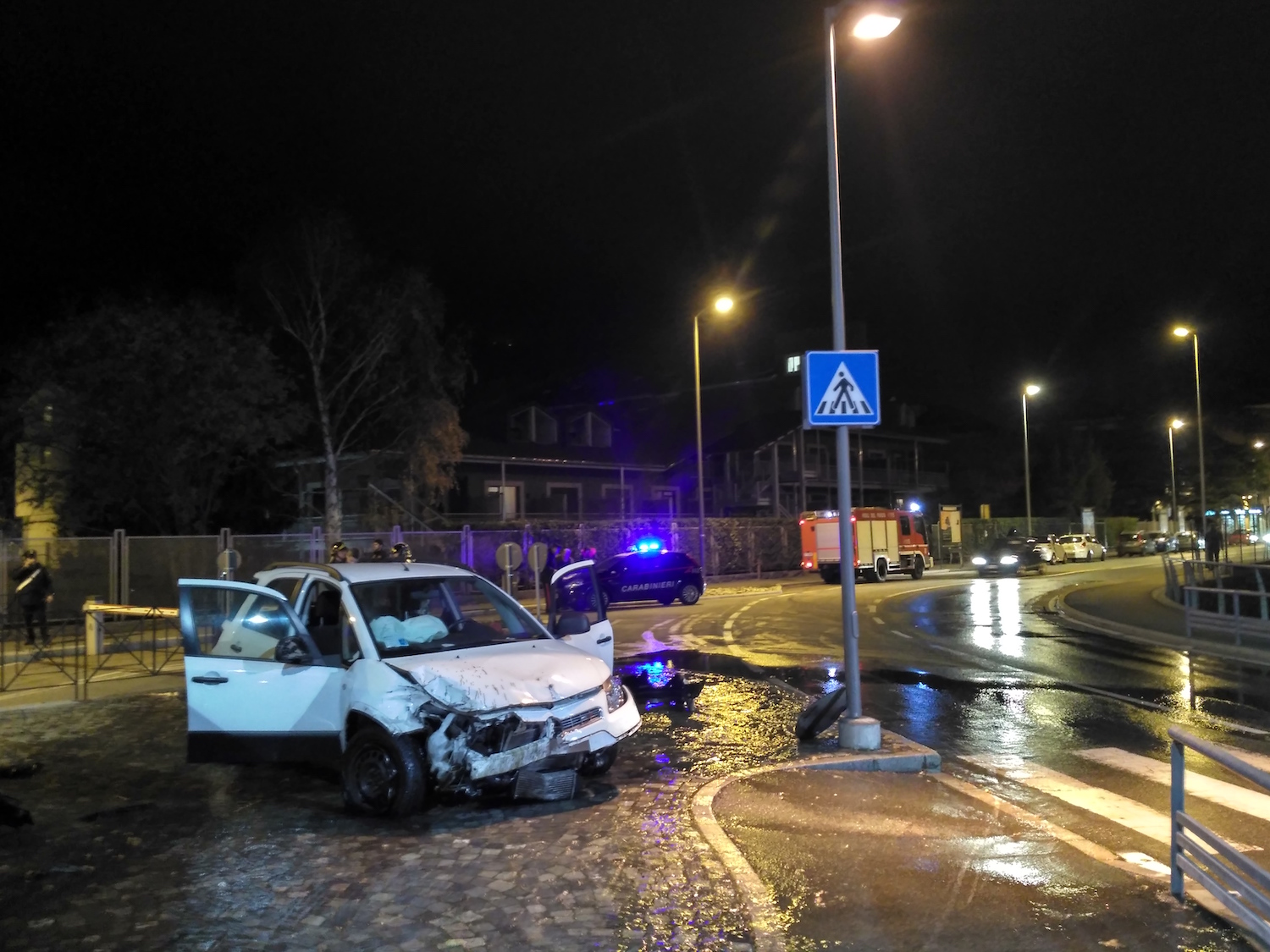 Ieri sera, 28 novembre, attorno alle ore 22.30, alla rotonda di viale dei Partigiani. L’auto è finita sulla parte rialzata della carreggiata, abbattendo una colonnina antincendio.