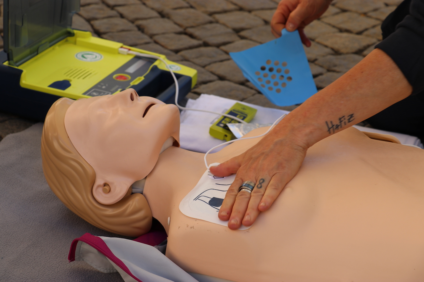 A quel punto, il chiamante viene geolocalizzato e passato alla centrale che si occuperà di gestire l’evento. Parallelamente alla richiesta di aiuto, possono partire le manovre come il massaggio cardiaco e, se disponibile, di uso del defibrillatore, che in piazza Chanoux vengono dimostrate con un manichino ed un simulatore DAE. Se non si è formati, “anche posando il telefono per terra, in ‘viva voce’, l’operatore della centrale 118 fornirà le indicazioni del caso. E’ importante sapere che non si è soli”. La pratica delle manovre di rianimazione cardiopolmonare, che si completa con l’arrivo dei soccorsi avanzati (l’ambulanza), è fondamentale per limitare il rischio di danno cerebrale alla persona colpita da infarto.