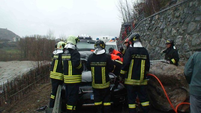 Un masso si è staccato dalla parete ed ha travolto un’auto che stava passando proprio in quel tratto. E’ successo questa mattina, mercoledì 16 marzo, intorno alle 8.30, nel comune di Villeneuve, sulla strada intercomunale dell’Enver che porta ad Aymavilles.