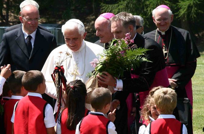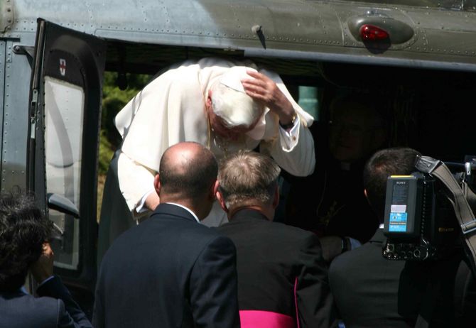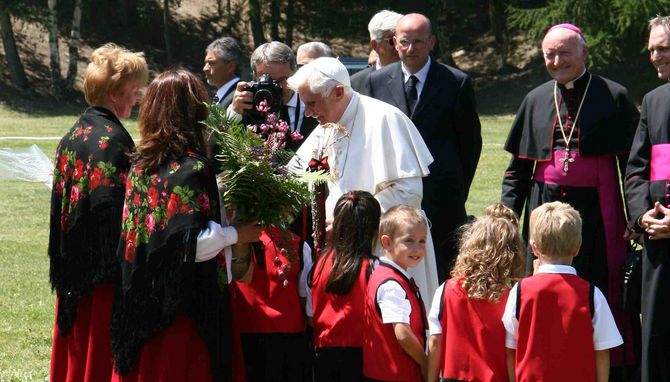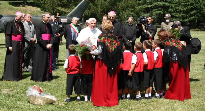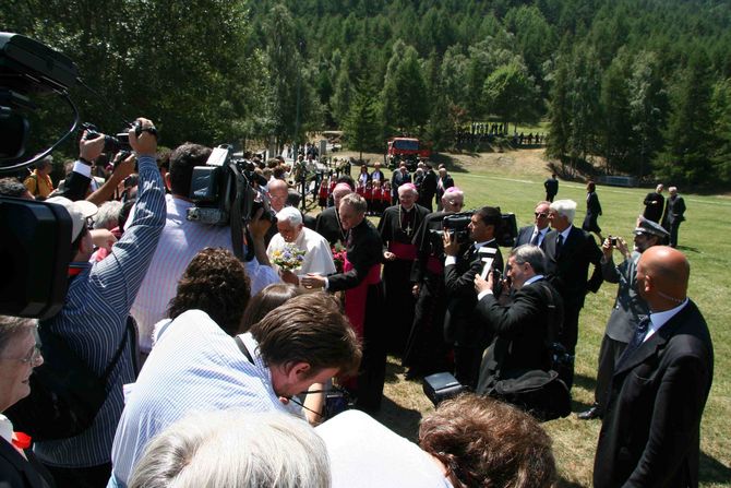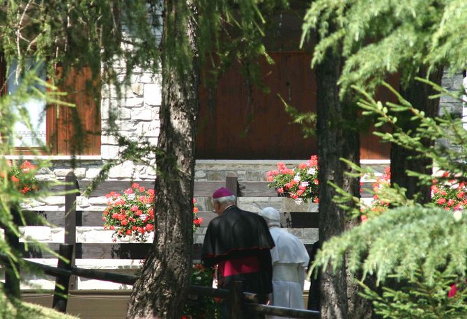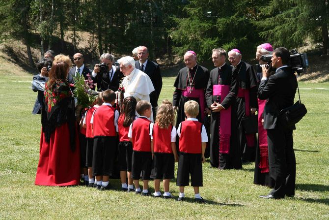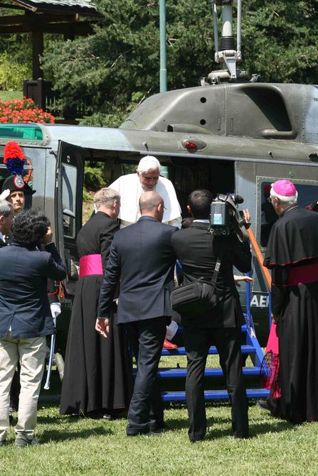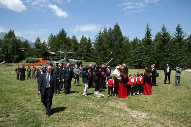 L’arrivo del Pontefice a Les Combes. Passerà in Valle la sua terza vacanza estiva, dal 13 luglio al 29. Due settimane tra i monti della Valle d’Aosta scandite da preghiera, meditazione, musica e qualche passeggiata. Le immagini dell’arrivo a Les Combes.