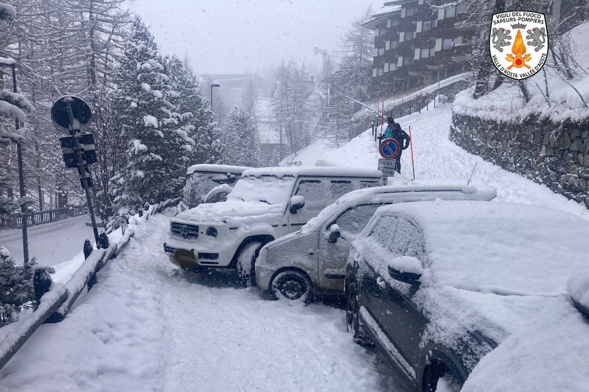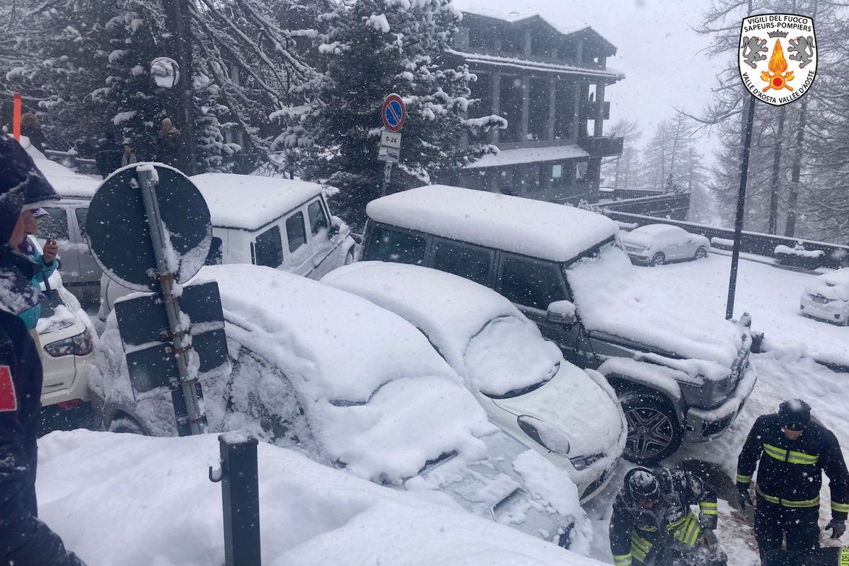 “Carambola” a Cervinia, 10 auto incastrate tra loro. Intervento dei Vigili del fuoco