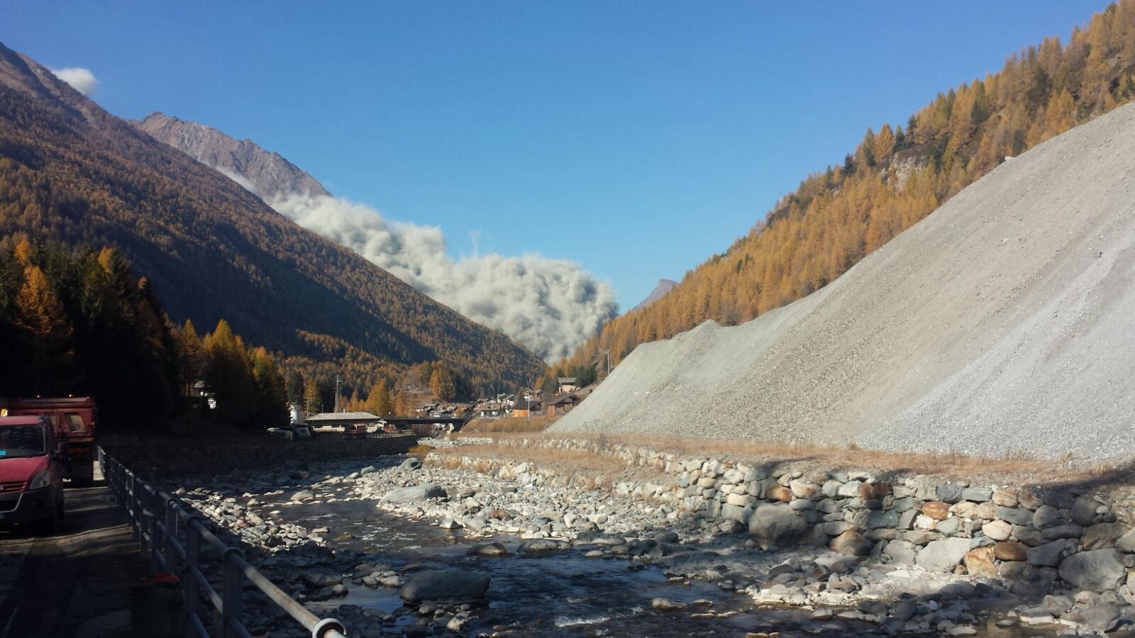 "Al momento c'è una grossa nube di polvere" racconta il sindaco Franco Allera "Appena passa cercheremo di capire l'entità del distacco e di valutare eventuali danni, magari effettuando un sopralluogo con l'elicottero".