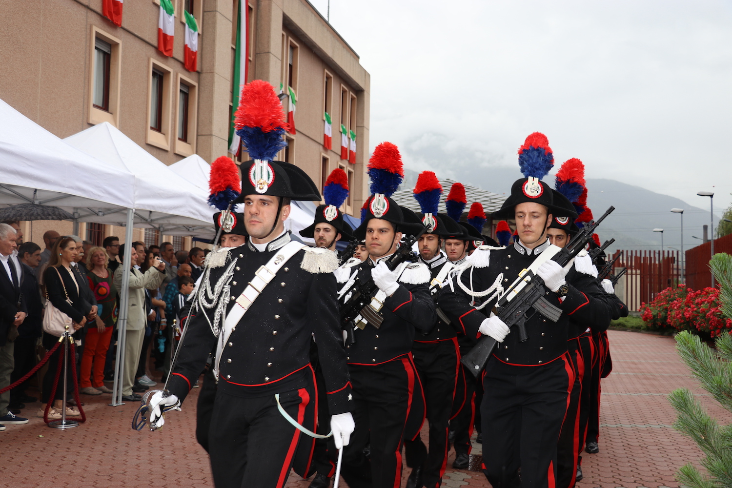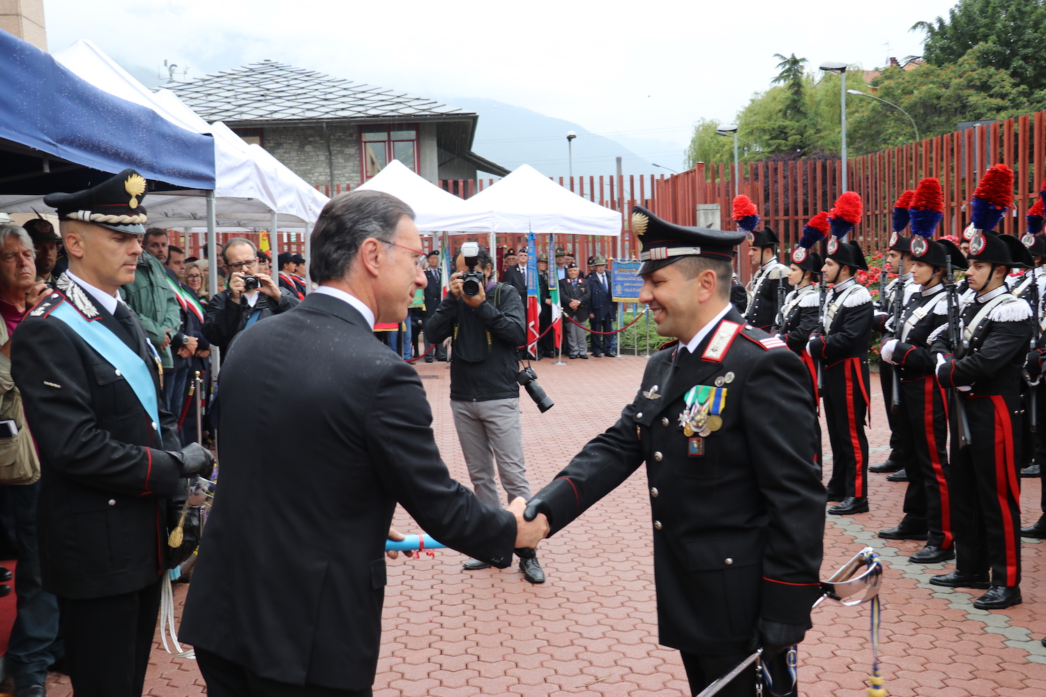 La pioggia ha costretto a ridurre, ma non ad annullare, l’ultimo atto delle celebrazioni 2017 dell’anniversario di fondazione dell’Arma dei Carabinieri. Dopo esposizioni, conferenze e dimostrazioni che si sono susseguite lungo tutta la giornata di ieri, domenica 4 giugno, in piazza Chanoux, oggi si è passati al momento istituzionale. Alle 18, nel cortile della Caserma di via Clavalité, il comandante del Gruppo Aosta, tenente colonnello Emanuele Caminada, ha passato in rassegna un reparto schierato, composto da militari in alta uniforme e dai comandanti delle stazioni dell’Arma nella Valle, definite “imprescindibili presidi di sicurezza”, che “restano il cuore della nostra organizzazione” e sono “riconosciute tra i simboli dello Stato più evocativi e radicati”. “Nessuno – ha poi detto il tenente colonnello Caminada – può pensare di essere solo ‘un fruitore di sicurezza’ senza impegnarsi a segnalare situazioni di criticità e degrado”. In particolare, ai Sindaci della Valle, il comandante dei Carabinieri della Valle d’Aosta ha chiesto “di fare ogni sforzo possibile per realizzare di concerto con tutti gli attori designati adeguati sistemi di video sorveglianza, che in un territorio con le caratteristiche peculiari come la nostra Regione rappresentano un efficace deterrente, un ottimo strumento investigativo e accrescono nei cittadini il senso di 'sicurezza percepita'”. La cerimonia si è quindi chiusa con la consegna di elogi ed apprezzamenti ai militari che si sono distinti in servizio tra la fine del 2016 e l’inizio di quest’anno.