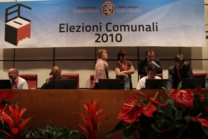 I momenti di chiusura in sala stampa. Giordano e Follien vincono ad Aosta ed arrivano trionfanti a Palazzo regionale. Ad accoglierli i vertici della coalizione e i giornalisti per le interviste di rito. Ph M. Vignolini e Andrea Moussanet.