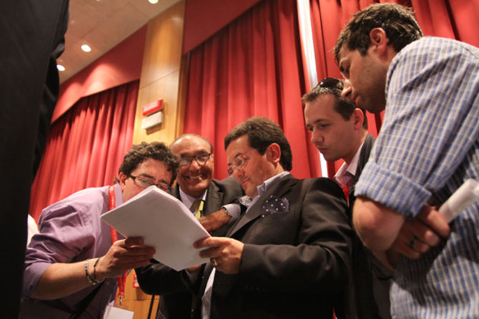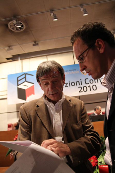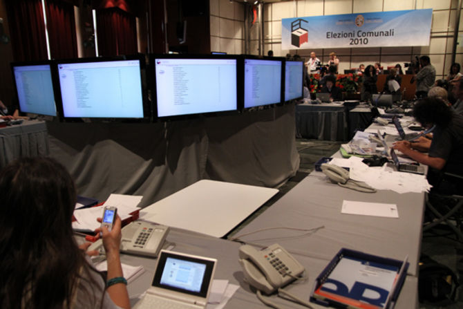 Gli ultimi istanti della sala stampa prima della chiusura di questa tornata elettorale. Tra visi sorridenti e compiaciuti e sguardi tristi e delusi.