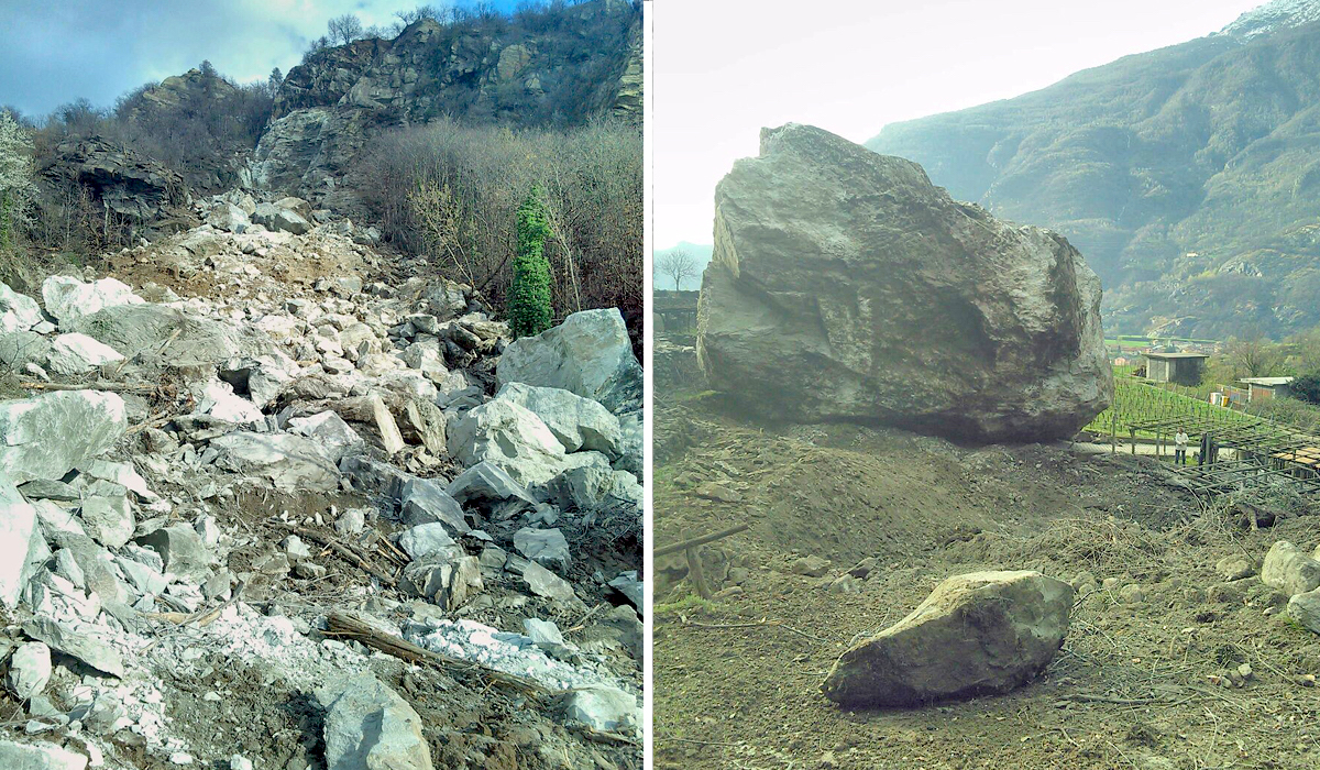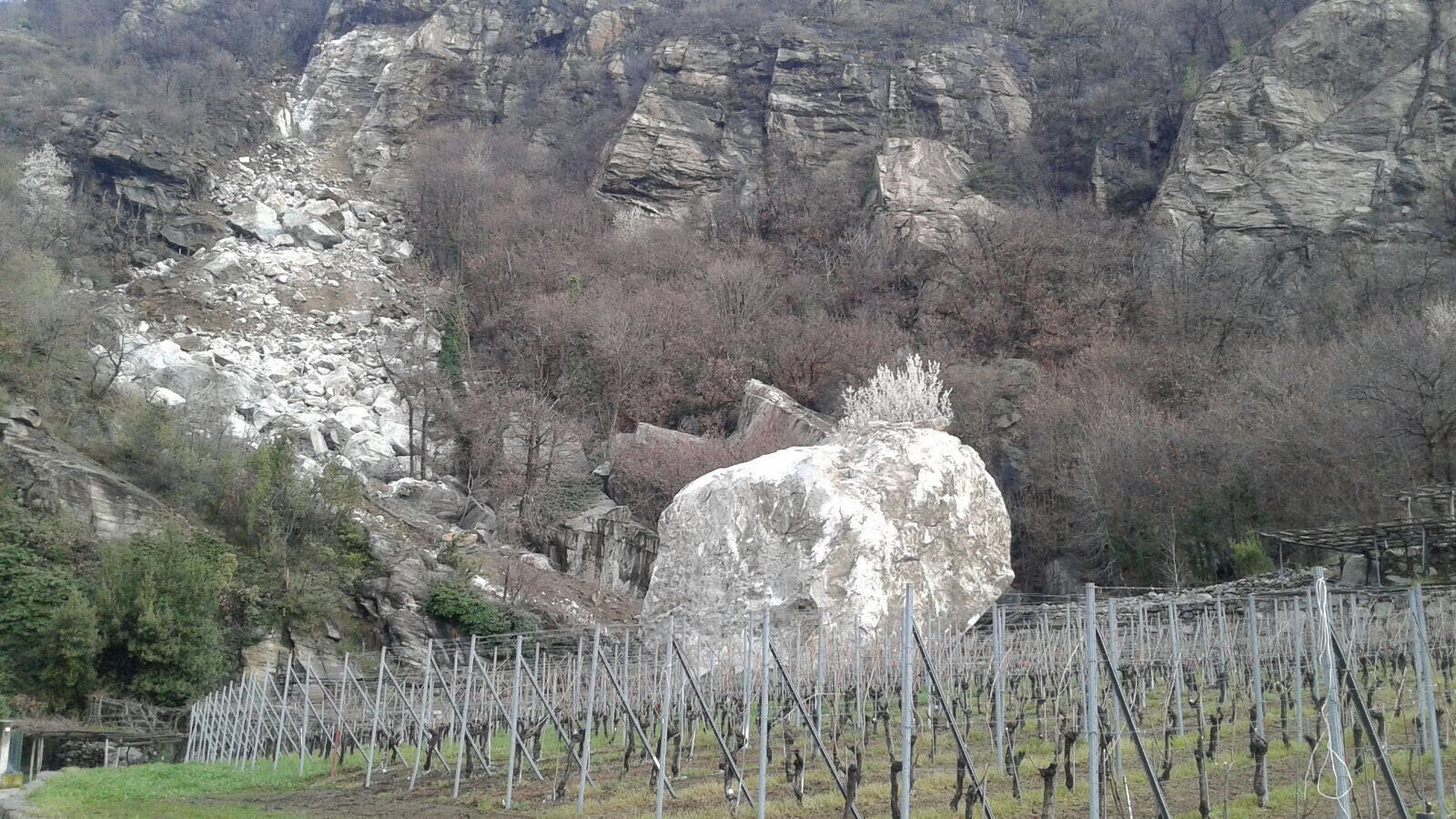 Un forte boato ha svegliato molte famiglie a Donnas, la scorsa notte, intorno alle 3.30. A provocarlo è stato il distacco di un enorme masso roccioso – stimato in 800 metri cubi di volume – che si è staccato dalla parete che costeggia la strada comunale in frazione Prelle, accanto alle vigne, sfiorando la piccola cappella di Pedeles. La caduta ha provato la rottura dei tubi dell’acquedotto e una frana, di 1500 metri cubi volume, che ha invaso la strada. La frazione, ora isolata, è abitata da tre persone che sono state fatte scendere a piedi lungo un sentiero.