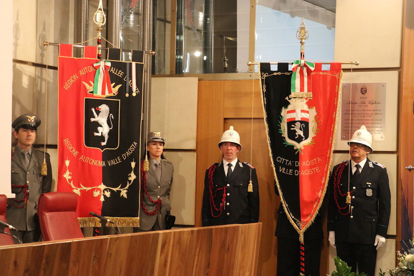 Stamattina, a Palazzo regionale, le celebrazioni della Questura per il 166° anniversario di fondazione dell’Istituzione. Uomini e mezzi schierati, oltre alla consegna di lodi ed encomi e all’intervento dei ragazzi del coro della scuola media “Cerlogne”.