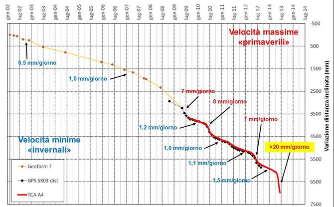 Il tempo scarseggia, visto che, dati alla mano, la frana subisce un’accelerazione notevole soprattutto alla fine dell’inverno. Non solo: come è apparso evidente lo scorso novembre, la porzione interessata, oramai frammentata e non più impermeabile, è diventata sensibile, oltre che alle acque del disgelo primaverile che scorrono in profondità, anche alle precipitazioni. “I nostri sistemi – ha evidenziato Bertolo – ci permettono di lanciare l’allarme in anticipo, di monitorare i movimenti e di predire con alta probabilità gli eventi, ma in questo ambito non esistono certezze. Il nostro obiettivo è quello di agire nel modo più ragionevole per mettere in sicurezza, prima di tutto, gli abitanti”.