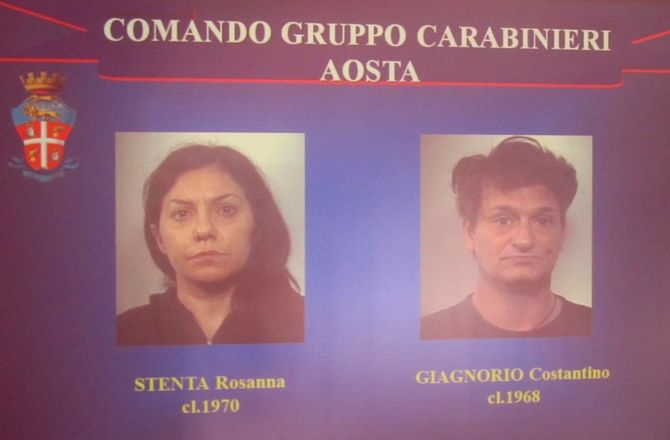 Due torinesi, Rosanna Stenta di 43 anni e Costantino Giagnorio, di 45 anni, entrambi con numerosi precedenti penali, sono stati arrestati alle 5 di questa mattina dagli agenti della compagna dei Carabinieri di Châtillon e Saint-Vincent per furto aggravato in concorso. Durante la notte le forze dell’ordine hanno ricevuto diverse segnalazioni, da parte di alcuni cittadini dei due paesi, che hanno riferito di aver visto la coppia aggirarsi in alcuni parcheggi, in particolare quello limitrofo alle terme di Saint-Vincent, mentre si aggiravano scrutando le auto in sosta con una torcia accesa.