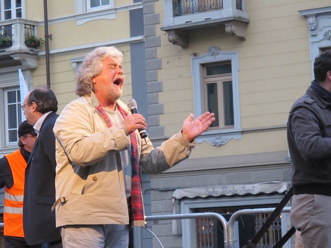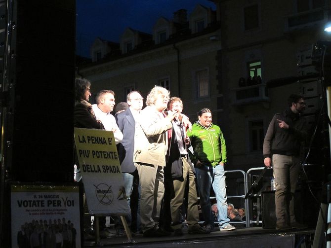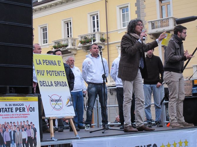 Grillo è arrivato ad Aosta per il comizio il Cinque Stelle. Tanti i temi toccati: “non ci trasformeremmo mai in un partito” e poi il “Vaff” a Rollandin.