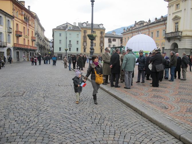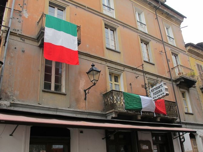 C’è chi ha messo il tricolore accanto alla bandiera della pace, chi l’ha messa accanto alla chiesa, chie ha esposto lo stemma dei Savoia. Aosta, però, non era vestita a festa per le celebrazioni volute da Napolitano.