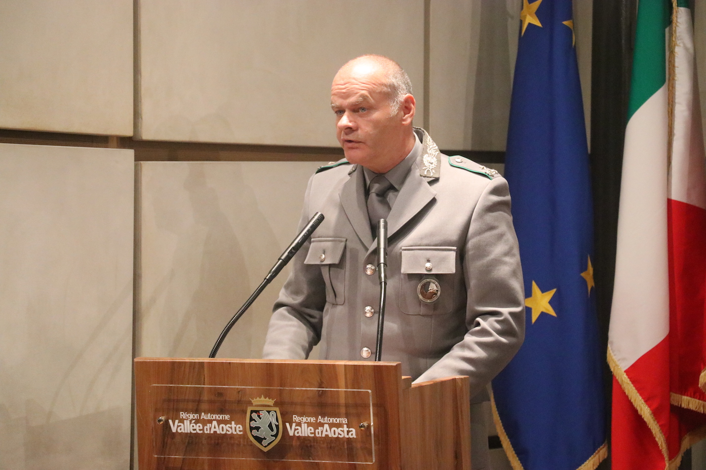 Del primo si è fatto interprete, prendendo la parola dinanzi ad una platea di autorità, Sindaci e rappresentanti delle altre forze dell’ordine, il comandante Flavio Vertui, ricordando che “i problemi che oggi la comunità si trova ad affrontare sono sempre più complessi”. In particolare, ha elencato: “gestire sempre meglio le foreste”, “conciliare la fauna selvatica con i danni alle colture” e mettere a valore “le coltivazioni, tanto importanti per la sicurezza dei nostri versanti”. “Su questi temi – ha affermato Vertui, in Forestale dal 1988 – credo che il Corpo possa e debba avere un ruolo importante nella ricerca di soluzioni, certo non da solo”.