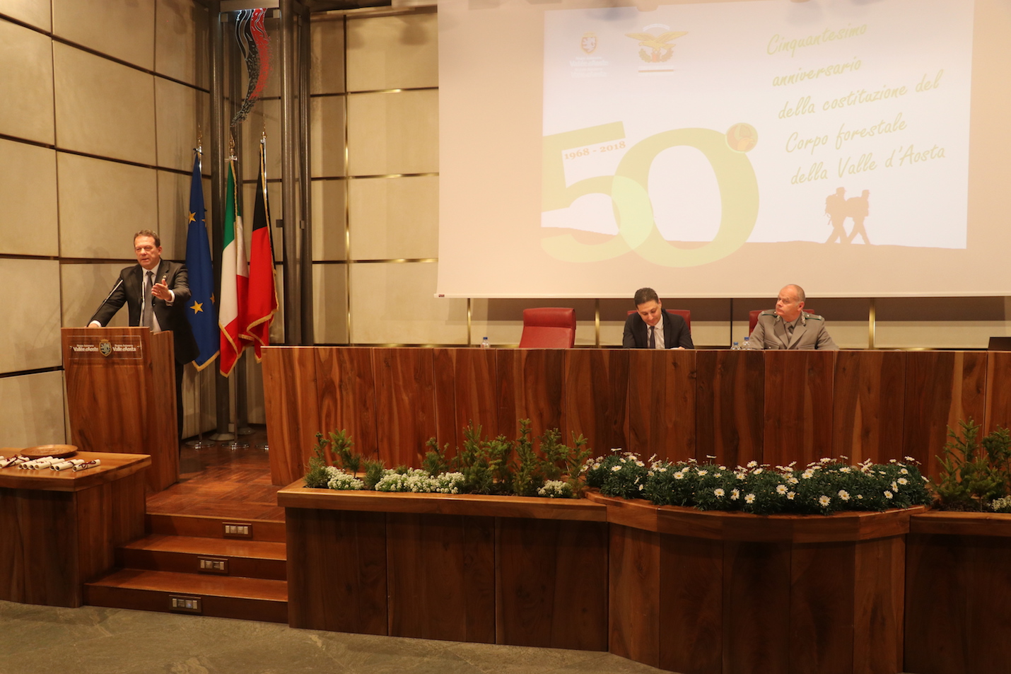 Orgoglio, emozione e voglia di continuare ad essere attori protagonisti nella gestione dell’ambiente in Valle. Sono gli stati d’animo affiorati con più ricorrenza durante la celebrazione del 50° anniversario della fondazione del Corpo Forestale della Valle d’Aosta, nella mattinata di oggi, sabato 17 marzo, a Palazzo regionale.